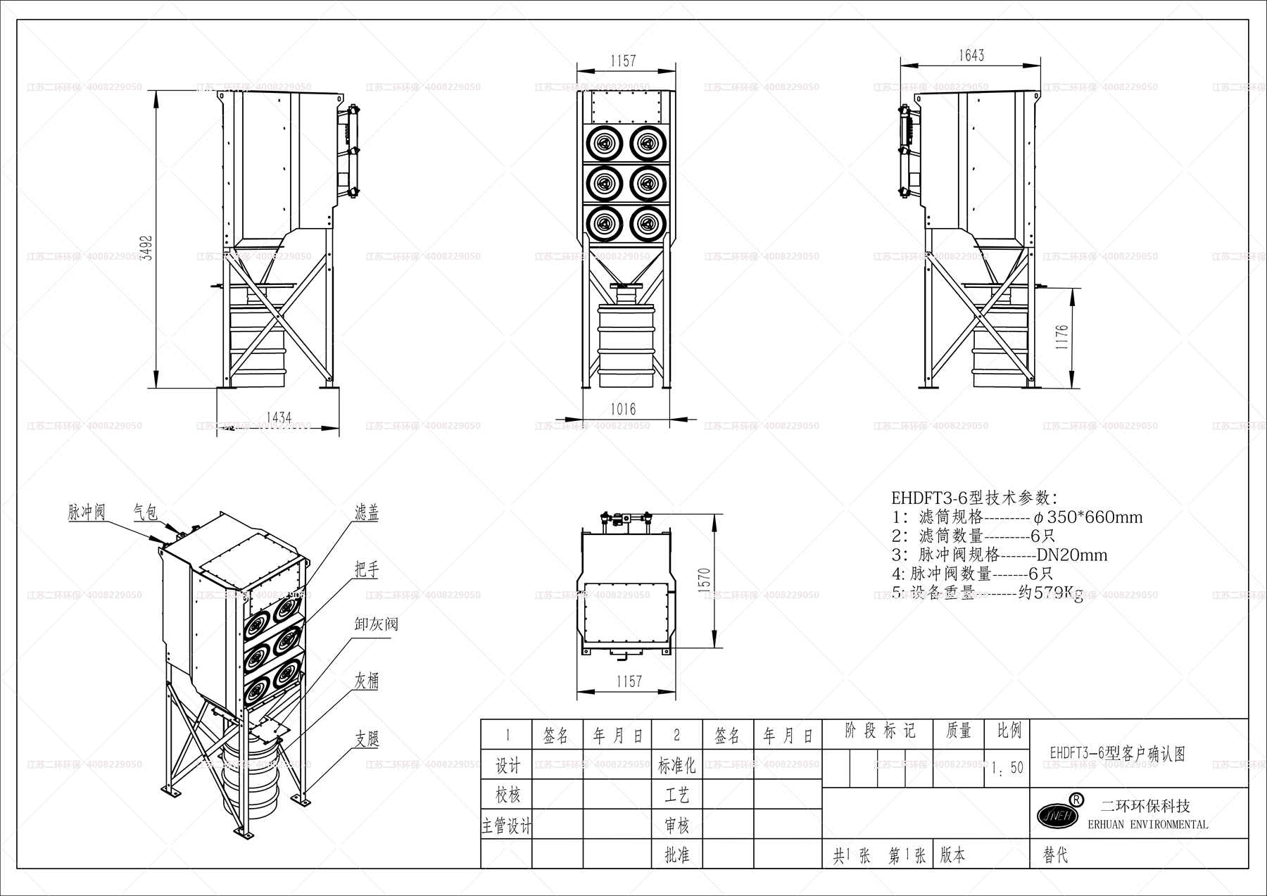 (1)產(chǎn)品使用過程中,有任何問題,請聯(lián)系二環(huán)環(huán)保售后服務(wù)熱線:400-822-9050